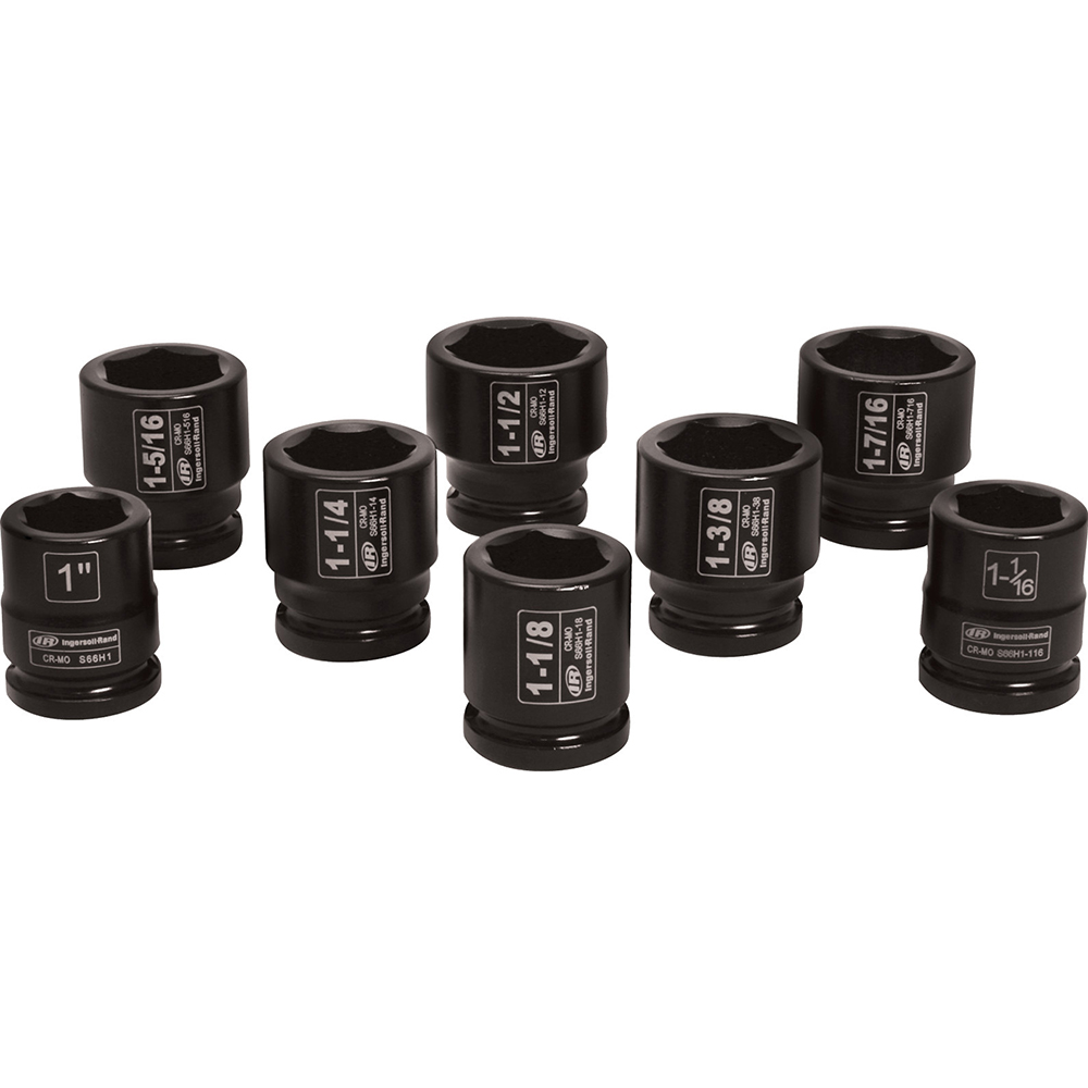 SK8H9TN 1” Drive Hex SAE Truck Service Impact Socket Set, Ingersoll Rand 9PC. Warranty: Lifetime Limited Special Features: Impact-grade toughness Chrome-molybdenum steel Drive Size: 1” Drive Type: Square Finish: Chrome-molybdenum steel